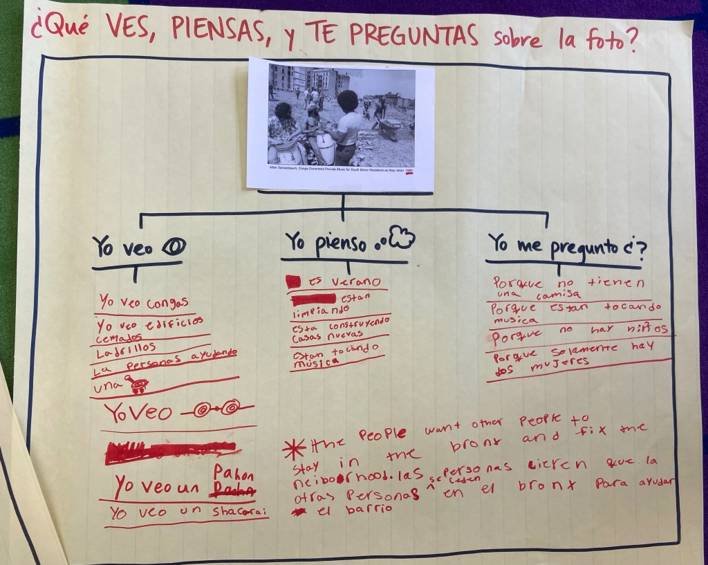 Natalie and I are both white teachers who, at the time, were teaching dual-language in The Bronx (Natalie still does). In our workshop, we got vulnerable and spoke about our status as outsiders to that community — Natalie is from Ohio, and I grew up in Manhattan, which may as well be worlds away from The Bronx. We discussed the strategies that helped us get informed, with the aim of doing soul-affirming, language-rich, student-centered social studies. Learning the history of the South Bronx changed our vision of the neighborhood, correcting our deficit/racist views. We crafted a unit that privileged community voices, shrinking our presence and promoting the agency of students. Our goal with the workshop was to provide participants with tools to start similar journeys. My goal with this post is to give my readers those tools as well.