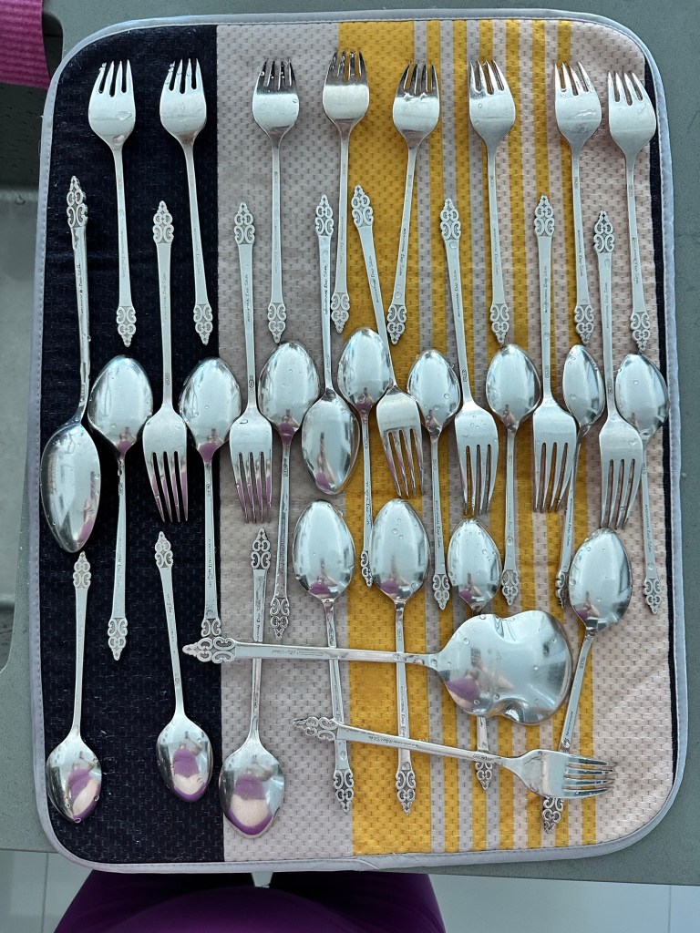 As they served me dinner (honey teriyaki salmon) and poured my water from a silver urn, I thought back to the silverware in my parents’ house, sitting in its wooden box.