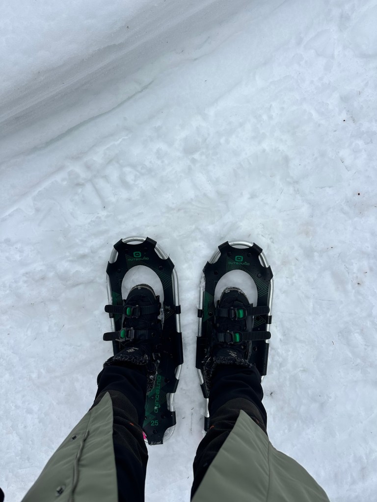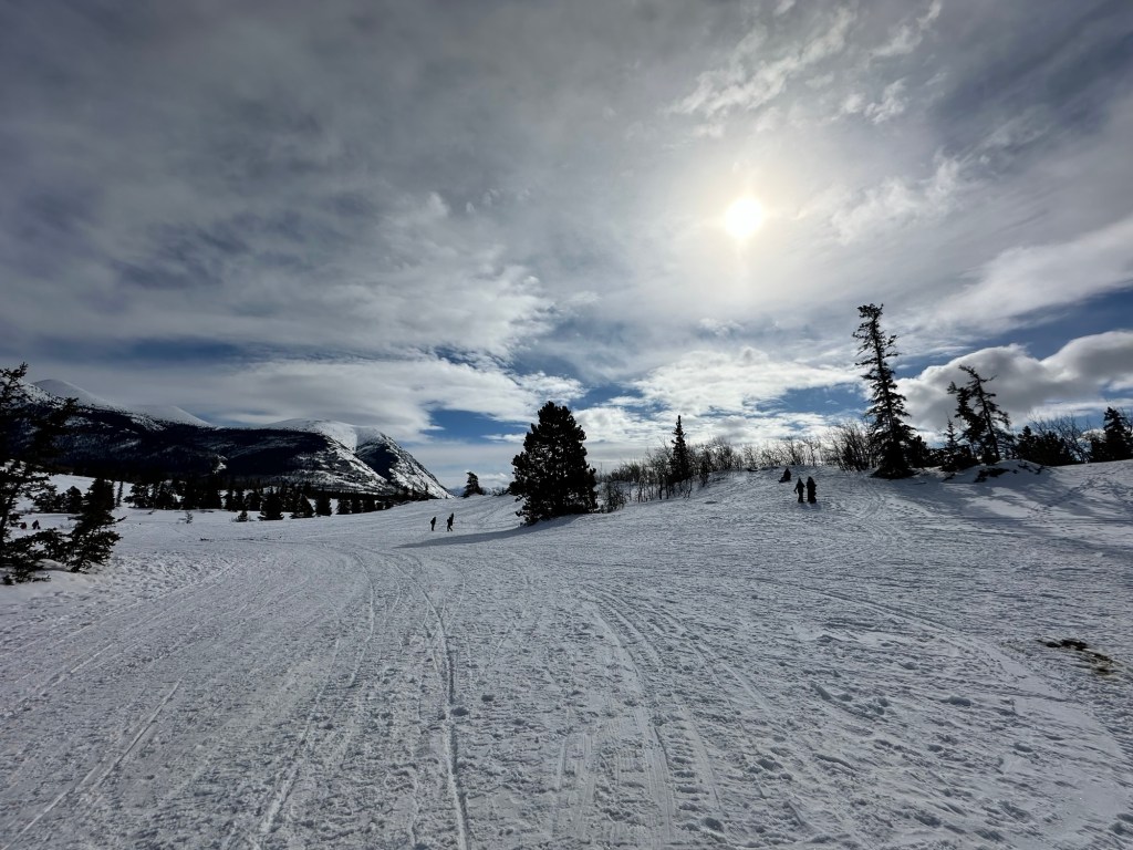 The weather. We got lucky and the sun came out every day except today, which was a snowy wonderland. It reflected off the white snow and made it glitter. It showed a different side of the mountains with each passing hour.