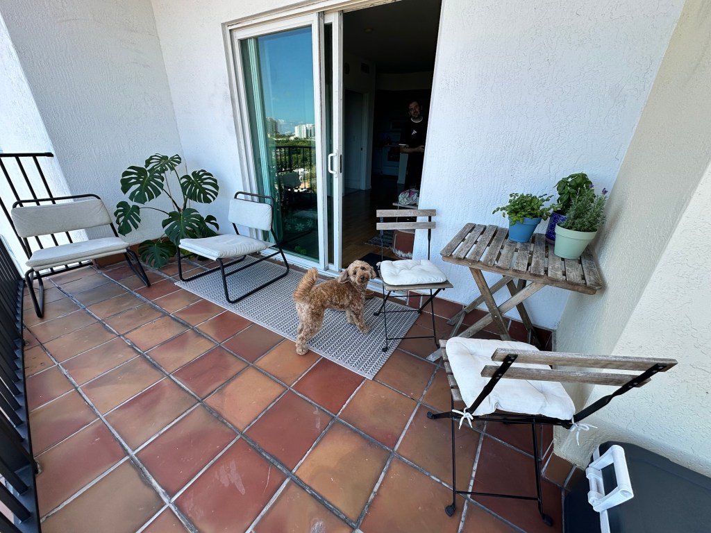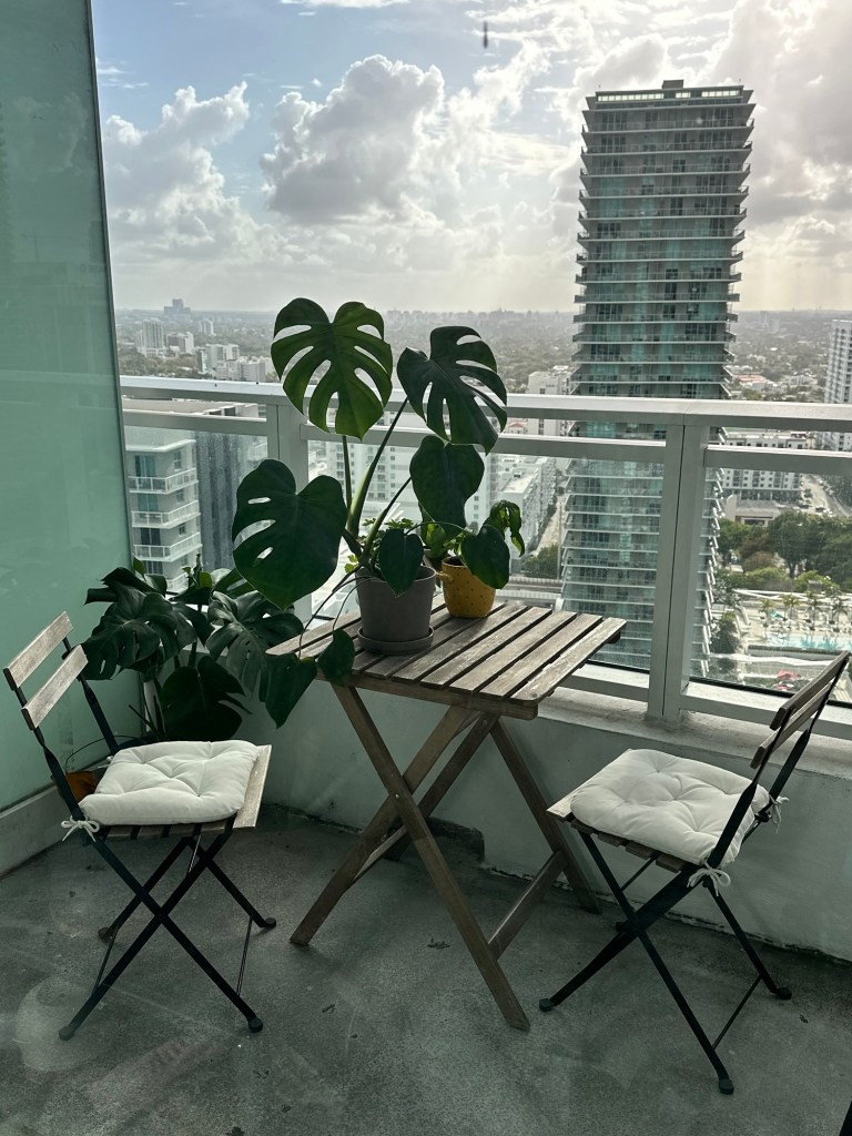 Repotting my monstera on my old studio balcony, a plant that has grown so large that it’s been relegated to the balcony for good (2024):