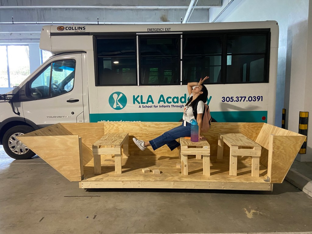 Angie, dramatic pose over the boat from our Refugee play my first year at KLA (2022):