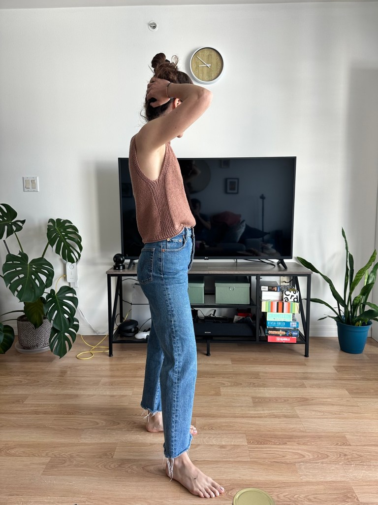 After listening to the instructions, we went into the dressing room to gear up. J turned to me in her giant vest and I helped her tighten the sides.