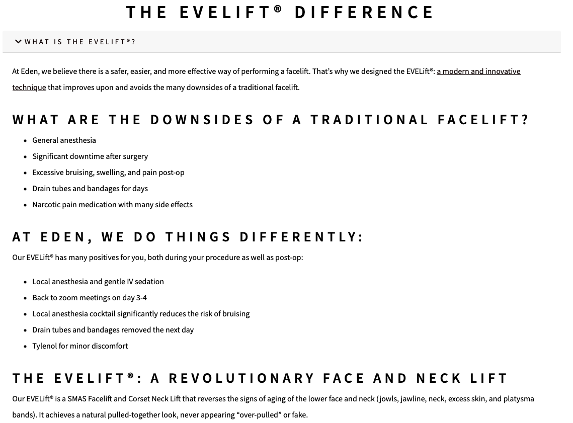 Primary copywriter for Eden Plastic Surgery, Miami, FL.