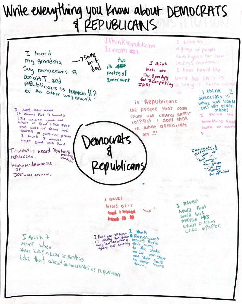 Politics comes up when the students share that they’re starving before lunch and can’t concentrate on reading, so we decide to swap reader’s workshop and read aloud and bring an extra fruit from our early snack to munch on when we start to feel the hunger pangs. Politics comes up when the students vote on whether we should stay indoors for recess or risk going out when there’s a dark looming cloud over the playground. Politics comes up when one student tells her friend that Kamala Harris would be the first “Black woman president” and the friend replies, “the first WOMAN president at all!”
